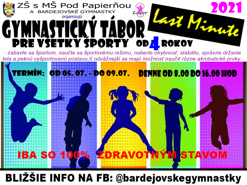 Ako by sme začali prázdniny, ak nie naším Gymnastickým táborom? Prihlášky prosím zasielajte alebo priamo odovzdajte trénerke do 30.6.2021